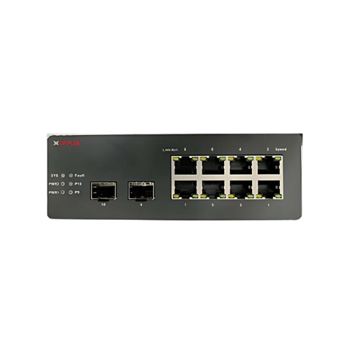 8 x 10/100/1000Mbps ports, 2 x 1000Mbps SFP ports, 1x Console port, 1 group of alarm output and relay output can define various custom condition trigger |