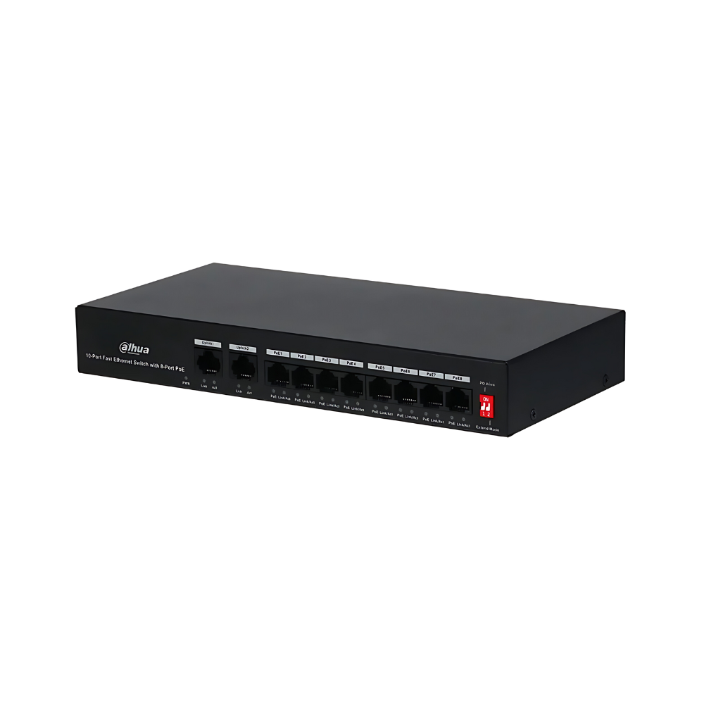 - Support eight 10/100M PoE power supply ports, and two 10/100M uplink ports